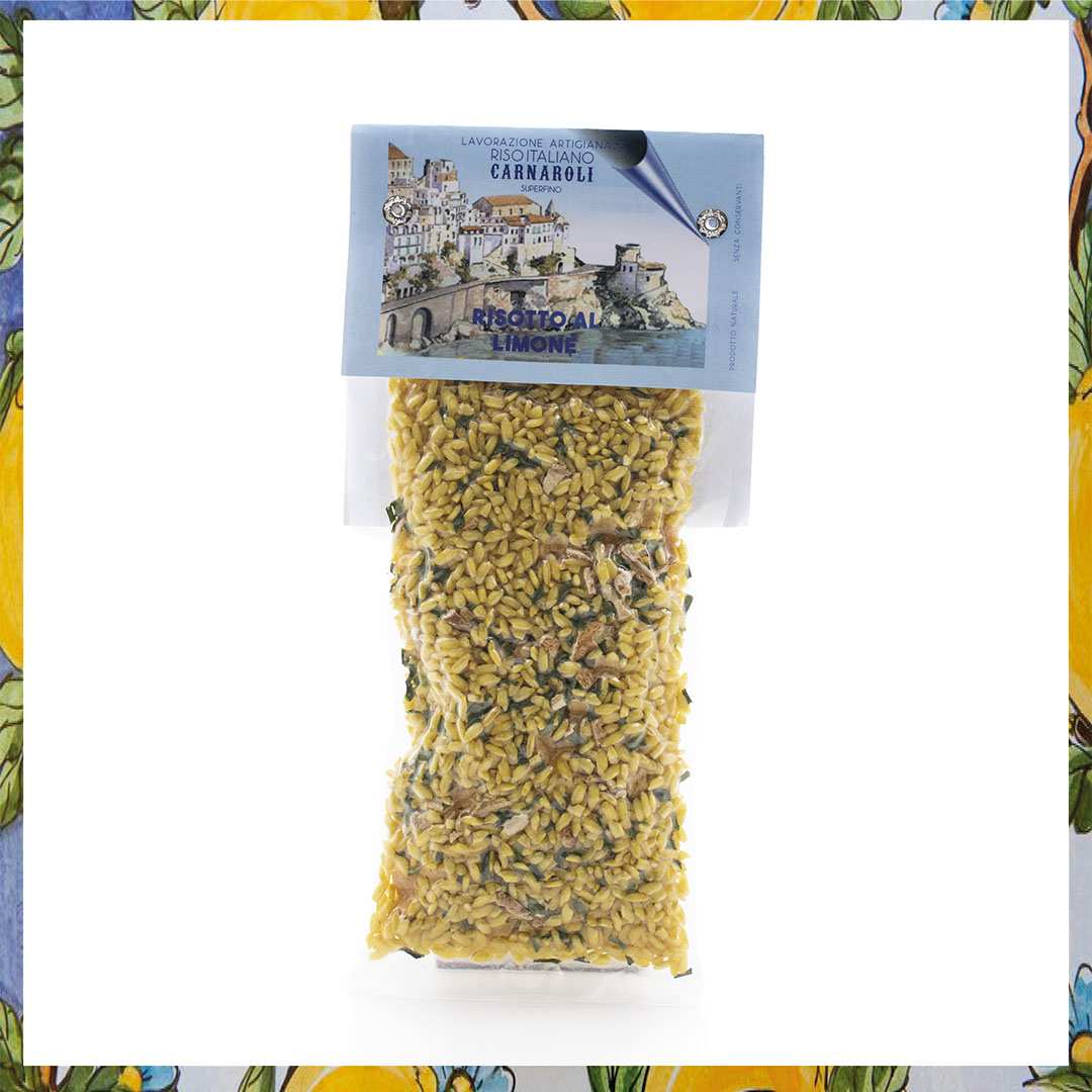 Ingredienti: Riso italiano carnaroli superfino (97,2%), bucce di limone (1,3%), succo di limone (1%), erba cipollina, olio evo, aroma naturale e cartamo (in porzioni variabili). Può contenere tracce di: glutine, sedano e senape.